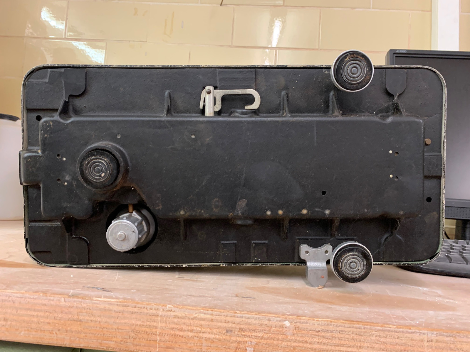 Unten Links Sitz der Dämpfer. So wie auf dem Bild solltest Du die Waage nicht legen wenn der Dämpfer gefüllt ist. Der Dämpfer ist oben in der Waage offen und da Öl fließt dann in die Waage. Schau mal ob Du in diesem Zustand den Dämpfer herausdrehen kannst. Eventuell ist er gegen das Herausdrehen mit einem Stift öa gesichert
