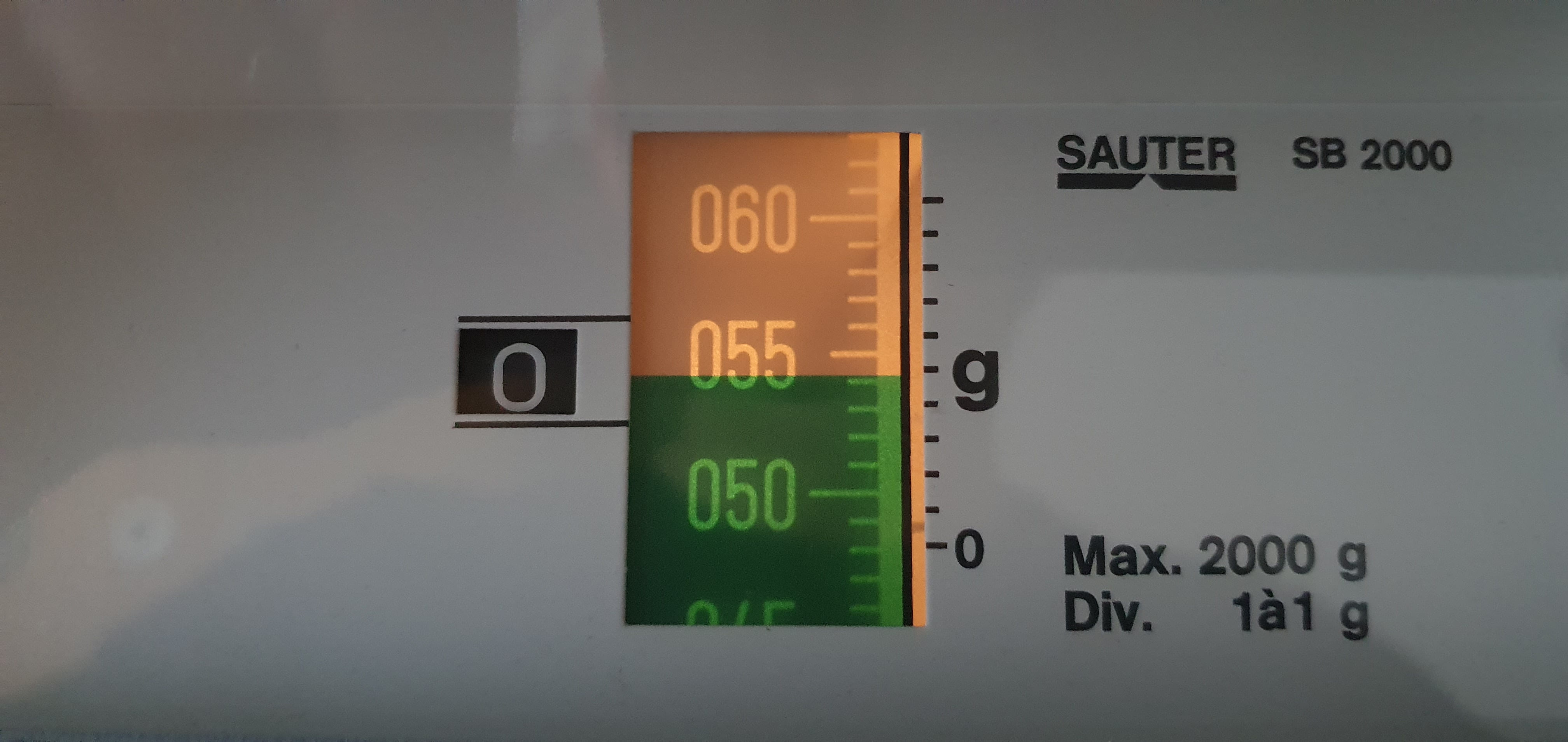 - Kann die Skala 1/10 g anzeigen, wie bei einer Schieblehre?