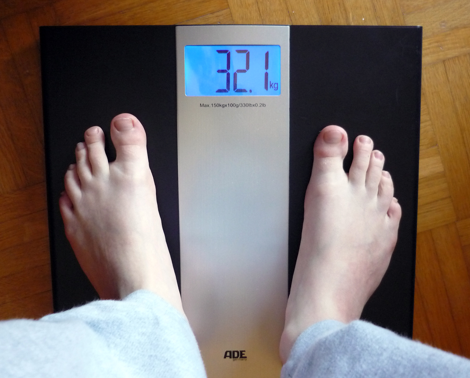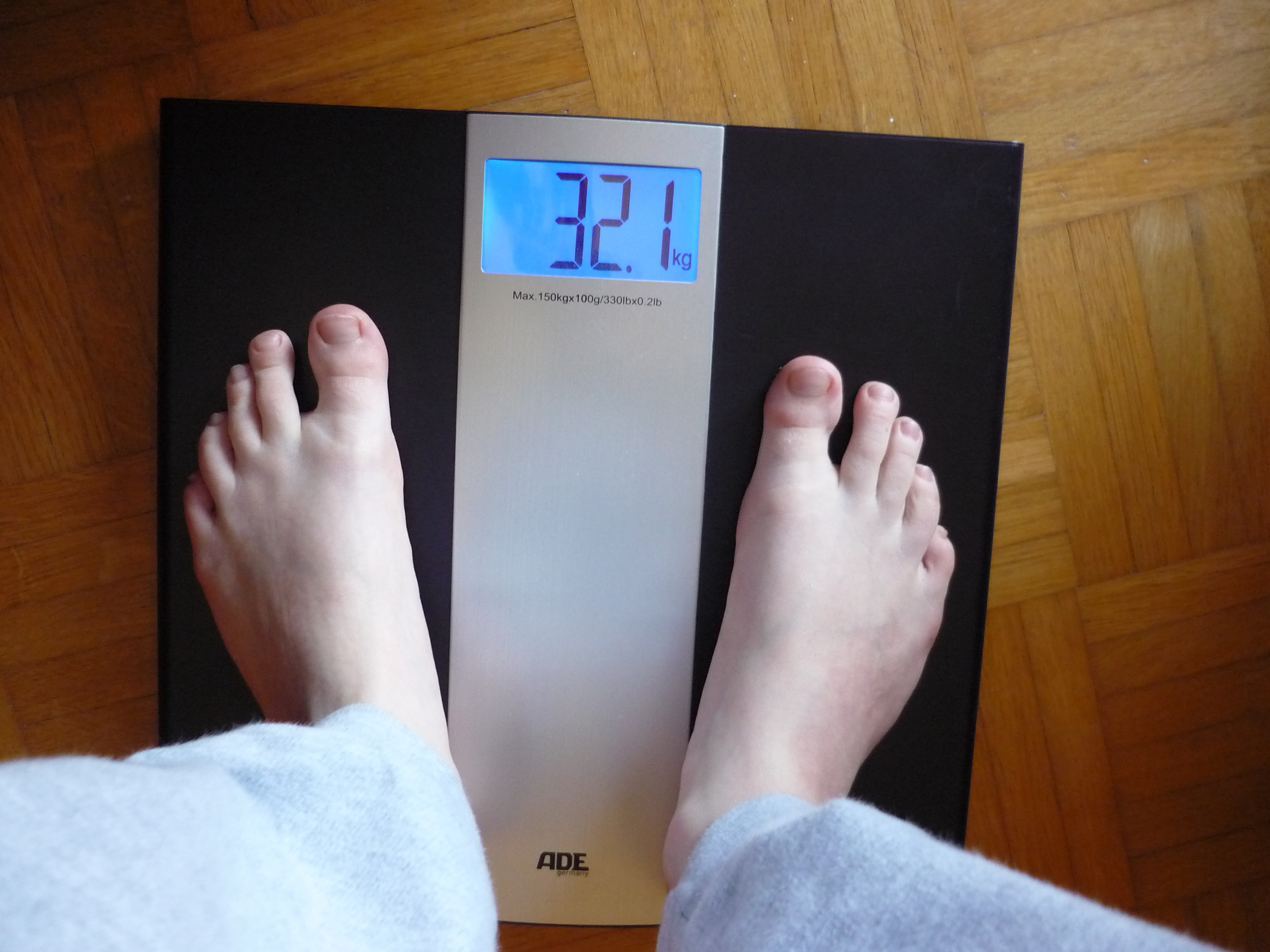 Datei:Elektronische personenwaage beim wiegen.jpg